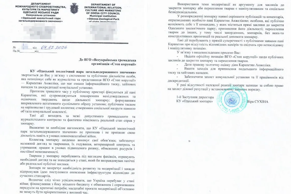 Окремої уваги заслуговує резонансна ситуація довкола Одеського зоопарку. Анжеліка Карапетян ініціювала публічні звернення та залучення іноземних фахівців для проведення перевірок. Частина експертного середовища розцінила це як можливий інструмент медійного тиску на профільні департаменти міської ради.